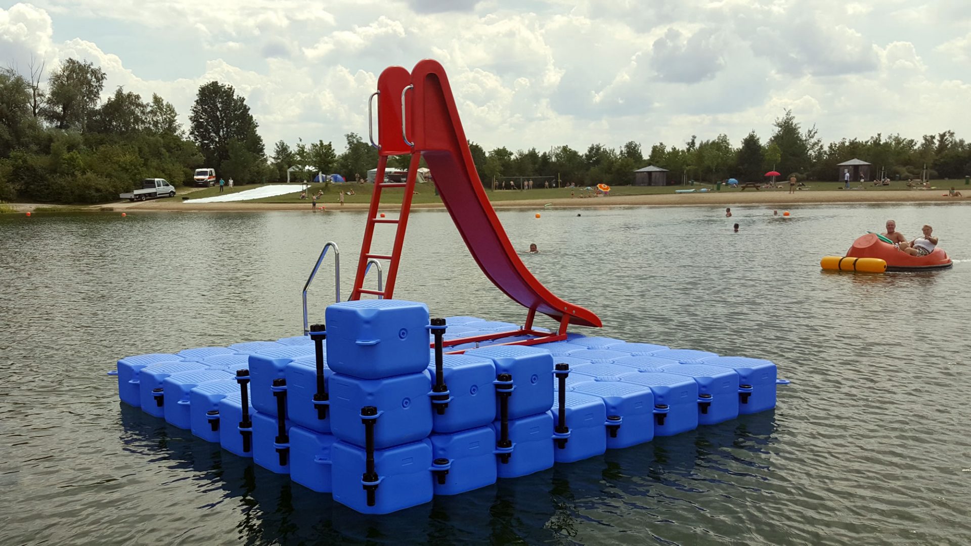Anfang August baute Duwe & Partner für die Stadt Neustadt eine Kunststoff Badeinsel aus...