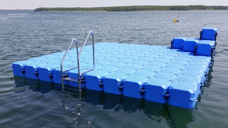 Nach erfolgreicher Nord Tour Mitte Mai, montierte das Team von Duwe & Partner ein paar Tage später drei weitre JETfloat Badeinseln in Deutschland und zwar in Ketzin, in Angermünde und in Warin. Die schwimmende Badeplattform aus Kunststoff in Ketzin sowie in Angermünde sind jeweils 5m x 5m groß und wurden beide mit einer Eckaufdopplung ausgestattet,… 96. Schwimmende Badeplattformen aus JETfloat Pontons mit Rutsche weiterlesen