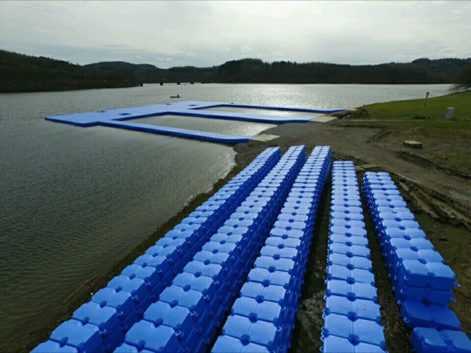 Wenn das Projekt am Biggesee fertiggestellt ist, zählt diese Ponton Schwimmkörper Anlage zu einer der drei Größten zusammenhängenden Badeanlagen in Europa.